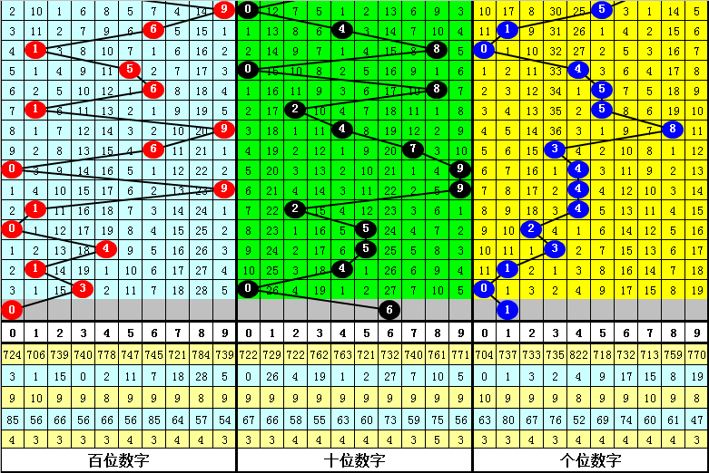 【和值】:上期和值为3,走低3点位,本期注意和值转向上升,关注和值7。