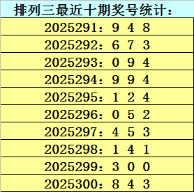 上期回顾:排列三第2025300期开奖号码为843,历史上组选出现40次,直选出现6次。