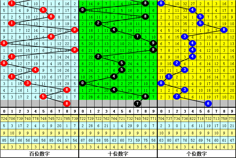 从以上统计可以看出,百十位两码合差3与3同时出现之后其下期两码合差表现最热的4个分别为:1246,本期百十位两码合差可以参考这四码中的数据。