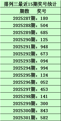 开奖回顾:排列三第2025301期开出奖号:582,其类型为:组六,直选形态为:奇偶偶、大大小、222路、温温热、质合质。