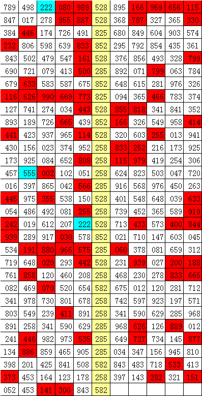 另外,在组选0-9的号码分布中,号码5、7表现最冷,开出6次;号码6走势最热,开出了13次。本期防号码组567全部轮空。