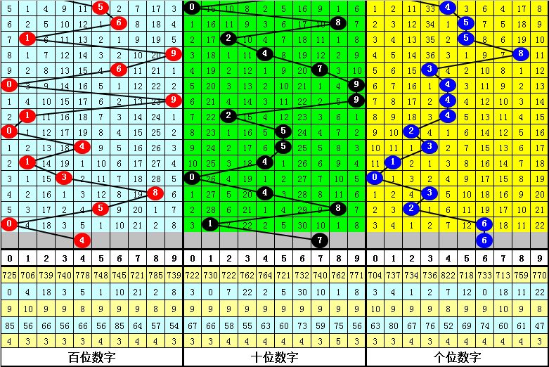 3、在其下期奖号中,个位号码奇偶比为26:39,大小比为30:35,本期个位关注偶号开出,注意号码6。