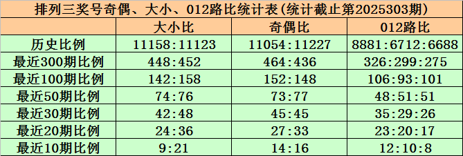 上期回顾:排列三第2025303期出现奖号943。开出组六,奇偶比2:1,012路比2:1:0,大小比1:2,和值16,跨度6。