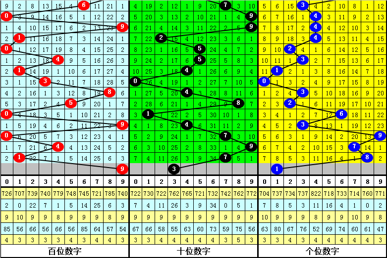 百位:1、2路号较热,本期防0路号反弹,关注9。