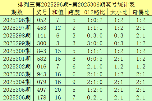 开奖回顾:排列三第2025306期奖号开出:178,组选类型:组六,大小比为2:1,奇偶比为2:1,和值为16,跨度为7。