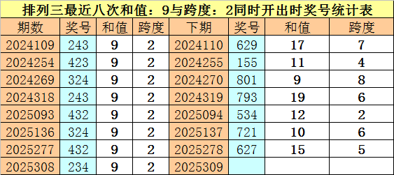 开奖回顾:体彩排列三第2025308期奖号为:234。和值为:9,跨度为:2。