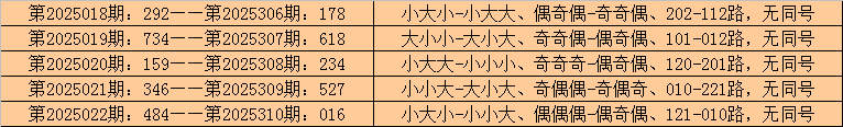 在排列三历史开奖中,第2025018期-第2025022期连续5期奖号为:292-734-159-346-484。