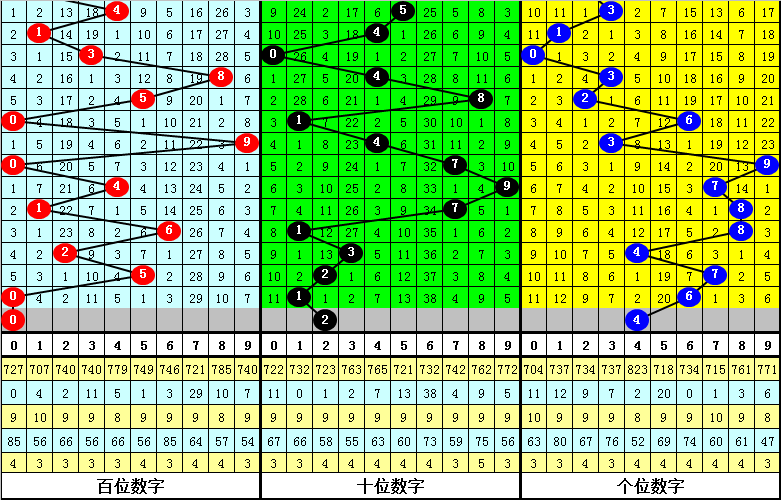 另外组选开奖中,号码大小比为6:9,大小 号码开出比例基本持平;号码奇偶比为7:8,奇偶号码出现比例基本持平;号码012路为5:6:4,基本持平。且每期开奖与最近5期开奖都没有出现相同的号码。(统计见下表)