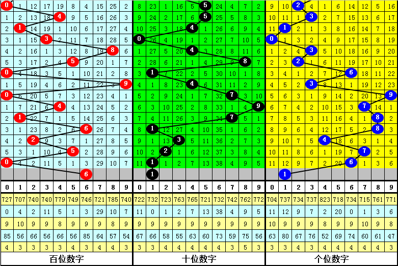 百位:当前遗漏最大的号码为7,遗漏29期,历史上该号最大遗漏为64期,本期百位继续排除号码7。