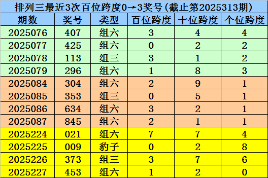 第2025224-第2025226期奖号:021、009、373,其下期奖号为:453,首位号码跨度为1;
