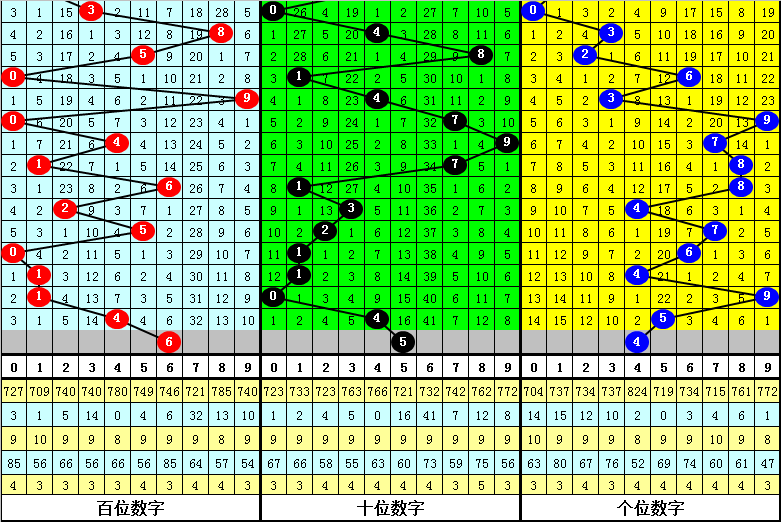 在连续10期开奖中,和值振幅分别为:0-4-4-1-6-5-7-1-4-3,逐渐下降,和值走势密集,本期预计和值小幅调整,出现在中部区域。