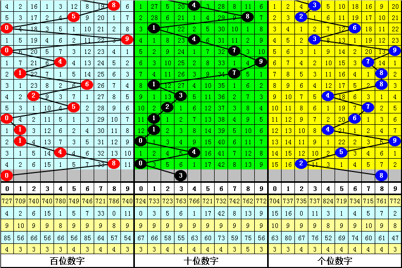 跨度分析:最近5期分别开出跨度:6、3、9、1、8,本期防跨度8重复开出。