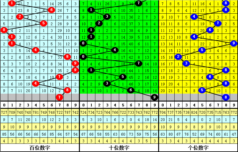 十位:近期奇偶号码出现次数基本持平,上期偶数号码出现之后,本期适当关注该位奇数号码出现;另外,该位0路和1路号码在最近20期奖号中走势较热,2路号码表现相对较冷,本期该位放弃2路号码,参考号码9。