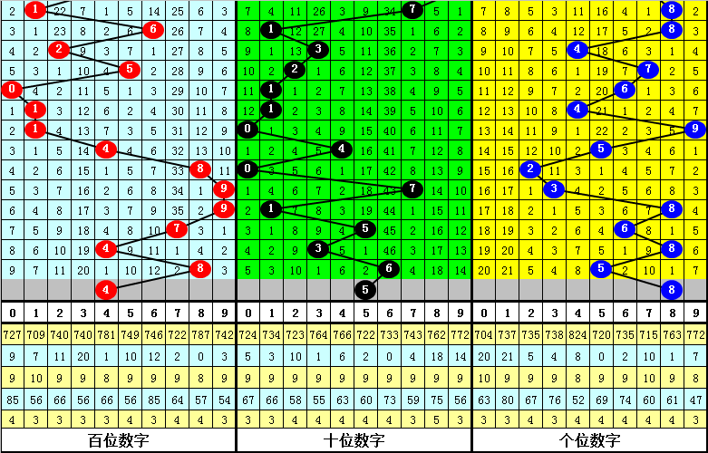 其中,号码奇偶比为24:33,偶数号码开出频率较高;号码大小比为31:26,小 号走势相对较冷;号码012路比为28:16:13,0路号码表现较热。
