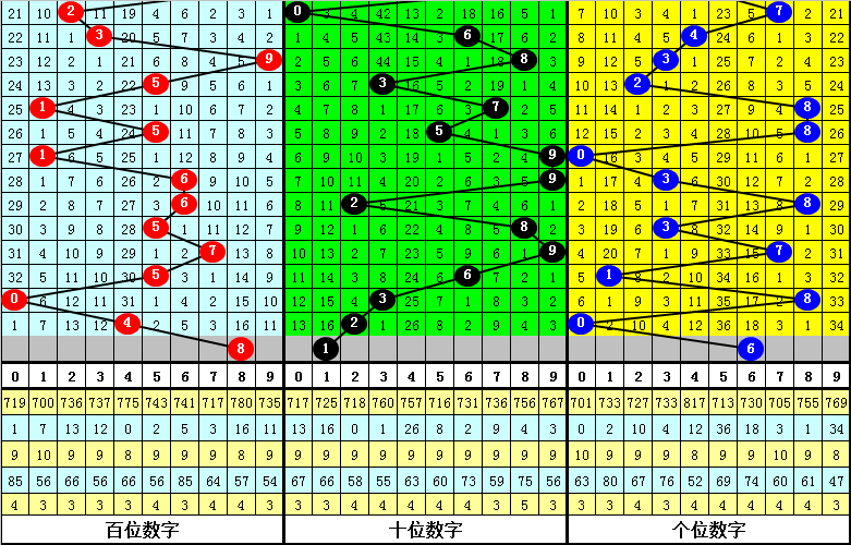 另外,在组选0-9的号码分布中,号码2表现最冷,开出6次;号码4走势最热,开出了23次。本期防号码组24全部轮空。