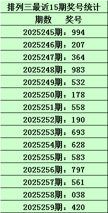 开奖回顾:排列三第2025259期开出奖号:420,其类型为:组六,直选形态为:偶偶偶、小小小、120路、冷热温、合质合。