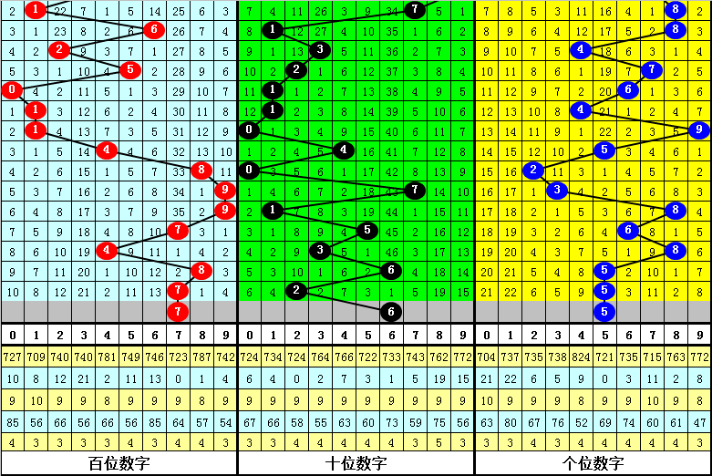 在以上统计中奖,直选122组合之后,下期奖号百位开出号码:123689,未开出号码0457,其中百位号码012路比为5:1:4,大小比为5:5,奇偶比为5:5,本期预计百位出现大号,精选一码7。