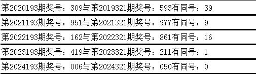 与前期历史同期奖号对比分析,在最近五年开奖中,第193期同期奖号与第321期同期奖号都出现了相同号码: