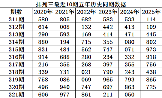 程成排列三第2025321期推荐: