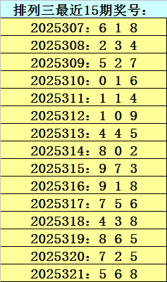 四叔体彩排列三第2025322期推荐: