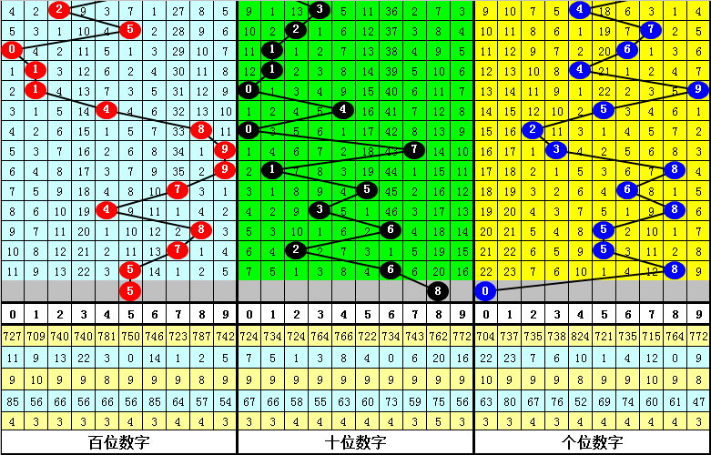 百位号码奇偶比为6:3,奇数号码表现相对较热,本期预计奇数号码再出;大小比为5:4,大号走势较热,本期防止大号再次出现。