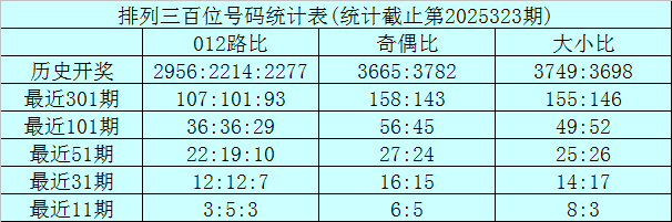 上期回顾:排列三第2025323期奖号为:687。奖号形态组六,大小比3:0,奇偶比1:2,012路1:1:1。