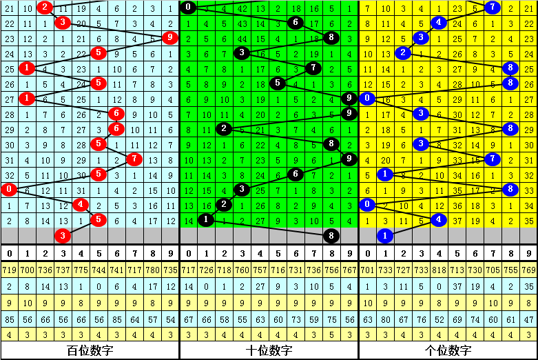 百位分析:上期出现号码5为:大号、质数,在连续9期开奖中,百位分别为:小 号、质数:1;大号、合数:6;大号、合数:6;大号、质数:5;大号、质数:7;大号、质数:5;小 号、合数:0;小 号、合数:4;大号、质数:5,其中小 号出现频繁,质数频繁开出,百位本期预计开出小 号、质数。