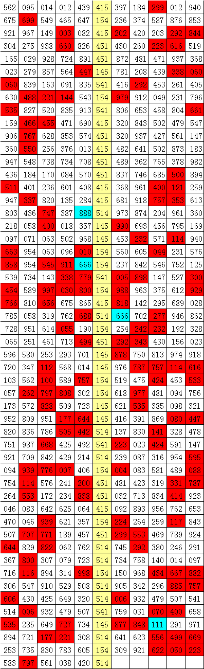 排列三第2025260期开出直选号码514,历史上该号码直选出现10次,前9次出现之后,下期开出号码为:973、666、137、239、745、734、905、006、641,其前后5期分别开出奖号:(统计见下表)