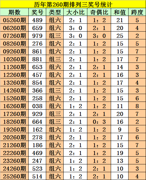 历年第261期排列三奖号中,开出次数最多三码为:0、3、5,本期注意号码:0。