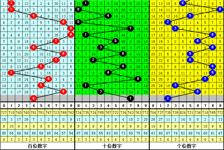在最近9期开出奇偶分布:偶奇偶的奖号为:432-096-094-052-016-618-234-016-438,在下期出现号码分别为:627-057-994-453-943-234-527-114-865。其中百十个位号码分布情况如下: