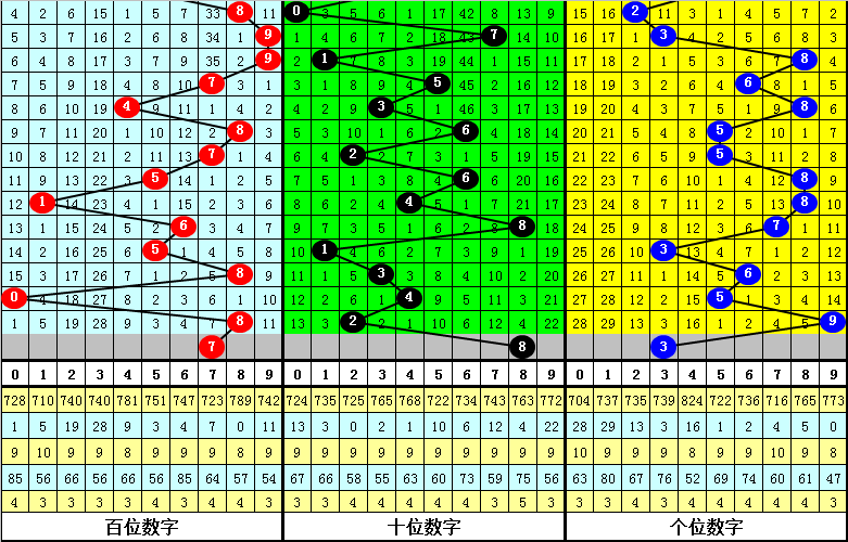百位上期开出号码8,为偶数,奇数号近期开出相对较少,目前轮空了3期,本期注意奇数号码逐渐回补,关注号码7。