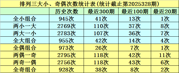 连续10期奖号中,全小形态开出0期,两小一大形态开出3期,两大一小形态开出4期,全大形态开出3期,本期大小形态判断:两大一小奖号。
