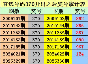 排列三直选370出现之后下期奖号分别为:892-866-867-090-967-124。