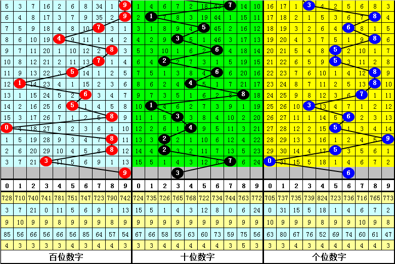 十位:上期为7,近10期012路比为2:4:4,其中1路号遗漏2期出现,本期排除1路号,注意0路号出现,关注3。