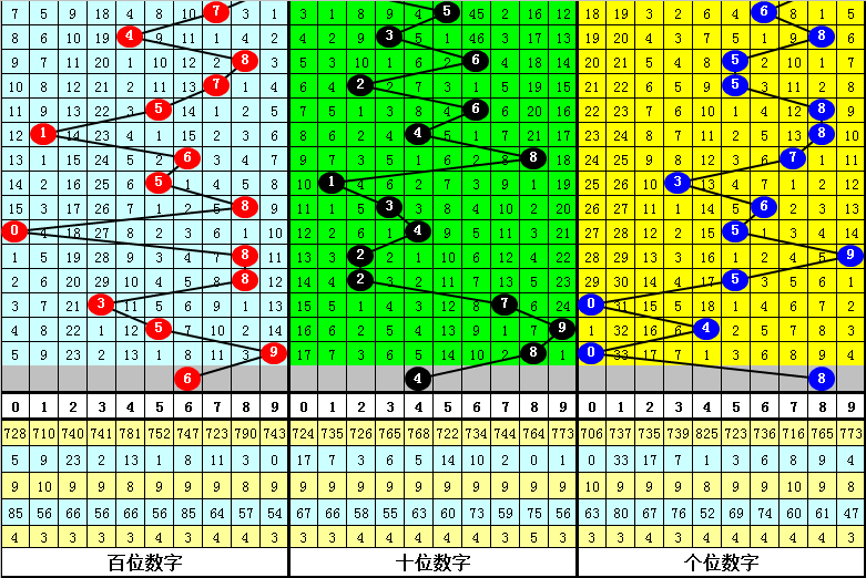 跨度分析:最近5期分别开出跨度:7、6、7、5、9,本期注意跨度走小,参考跨度4。