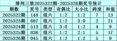 组选类型判断:排列三近期主要以组六号码为主,短期内不会改变,本期预计出现组六号码。