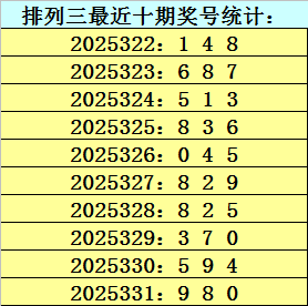 上期回顾:排列三第2025331期开奖号码为980,历史上组选出现36次,直选出现5次。