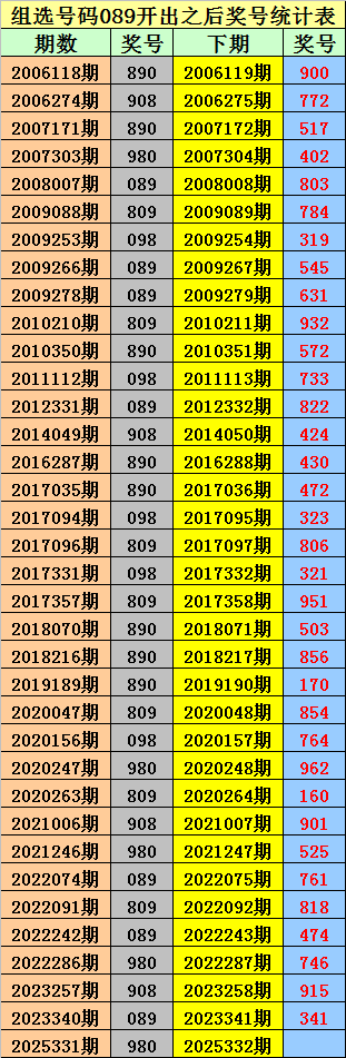 组选089之后,0-9号码分别开出: