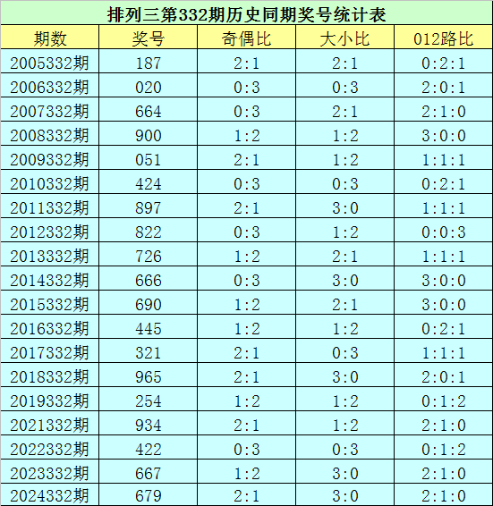 排列三第2025332期开奖日期:2025年12月12日,历史上第332期已开出了19次奖号,历年同期号码分别为:187、020、664、900、051、424、897、822、726、666、690、445、321、965、254、934、422、667、679。