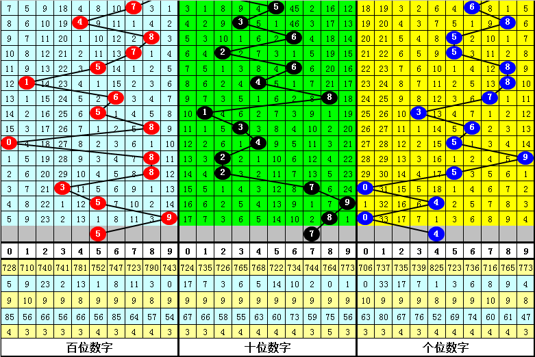 百位:当前遗漏最大的号码为2,遗漏23期,历史上该号最大遗漏为66期,本期百位继续排除号码2。