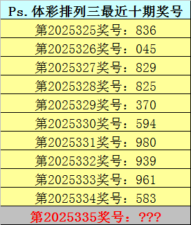 排列三第2025335期杀一码:2