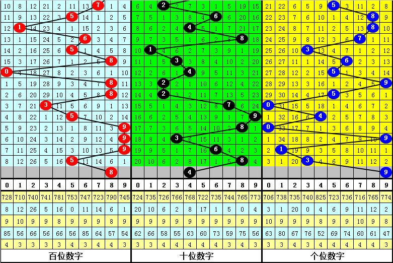 3.在以上9期奖号中,号码012路比分别开出2:0:1、1:1:1、2:1:0、0:2:1、2:1:0、1:1:1、2:0:1、3:0:0、1:0:2,012路出现个数比为14:6:7,本期预计开出012路比1:1:1。