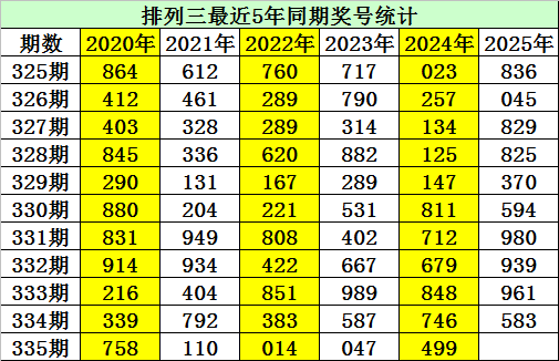 上期回顾:排列三第2025334期开奖:583,质合比为2:1,奇偶比为2:1,大小比为2:1。