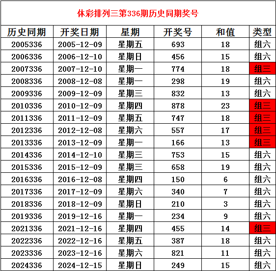 2025年12月16日排列三第336期开奖,历史同期分别开出奖号:
