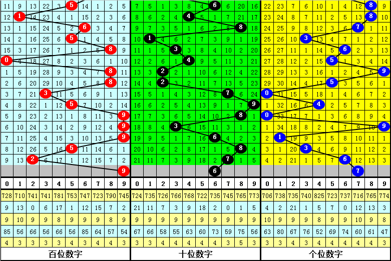 百位分析:百位最近9期出号:8-8-3-5-9-9-9-5-2,奖号大小比为7:2,奇偶比为6:3,012路比为4:0:5,本期百位参考号码129。