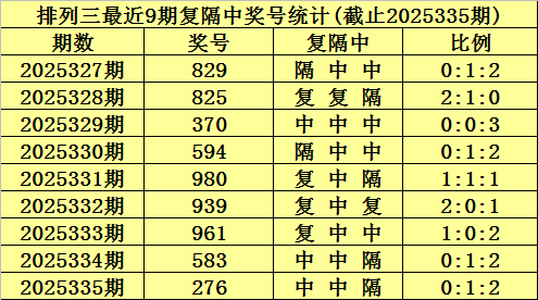 上期回顾:排列三第2025335期奖号为:276。大小比为2:1,奇偶比为1:2,012路比为1:1:1。
