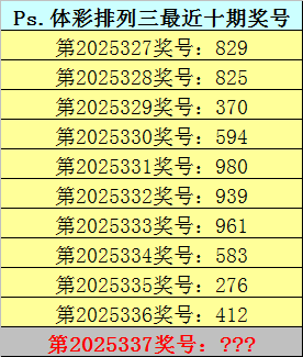 钱哥体彩排列三第2025337期推荐:类型——组六