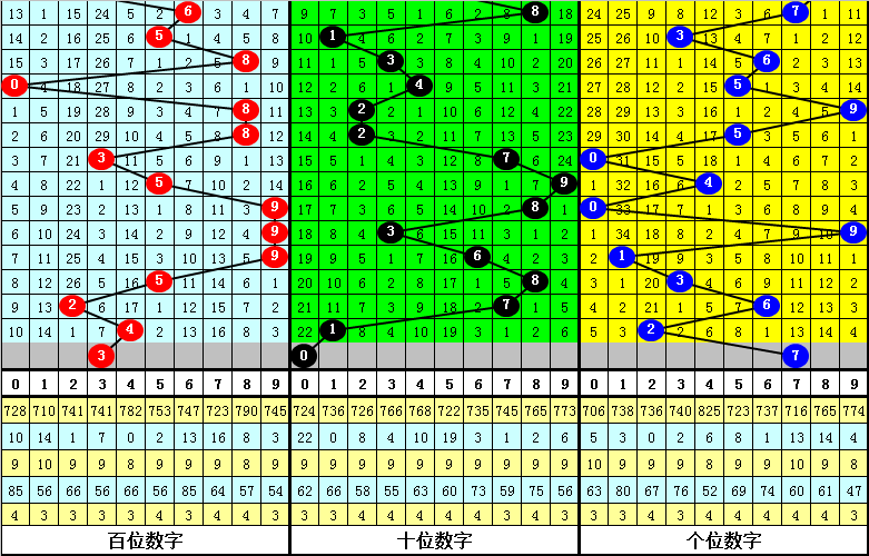 其中,百位奇偶比为4:4,大小比为4:4,本期百位一码参考3。