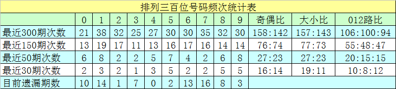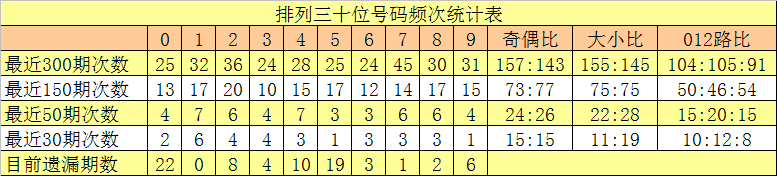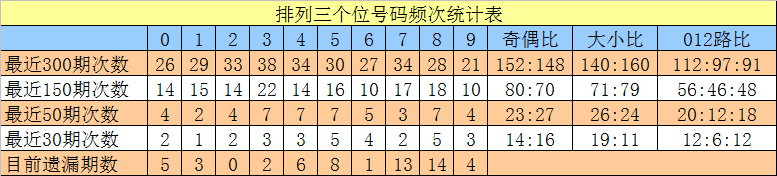 上期回顾:排列三第2025336期开出奖号412,号码012路比为0:2:1,奇偶比为1:2,大小比为0:3,和值为7,跨度为3。