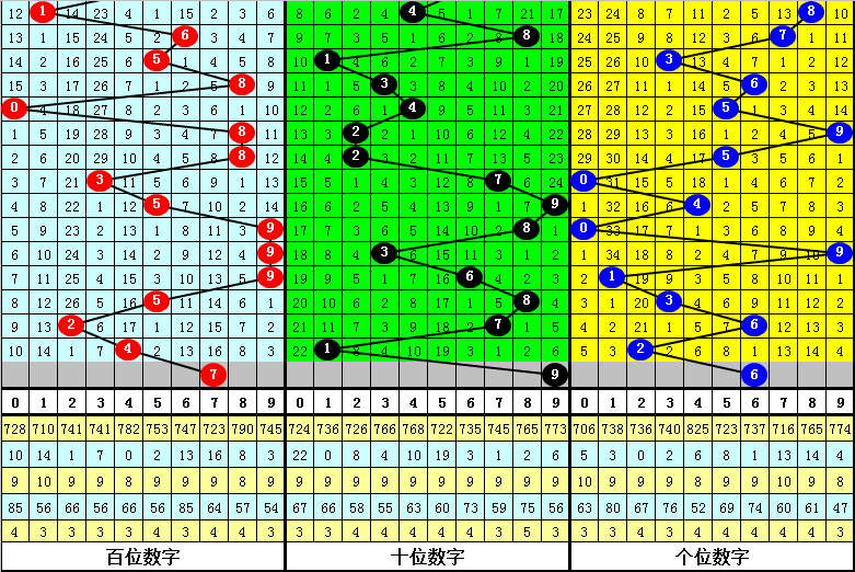 十位号码:前50期走势最活跃的号码为:1、4开出7个,2、7、8开出6个;走势最冷的号码为:5、6开出3个,0、3、9开出4个。十位号码012路比开出15:20:15,大小比开出22:28。本期十位排除两码:1、6,参考号码3、7、9,胆码关注9。